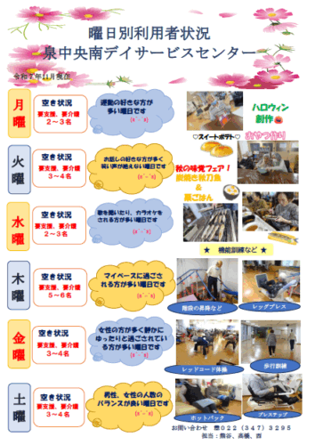 泉中央南デイサービスセンターの空き情報 令和7年11月現在
