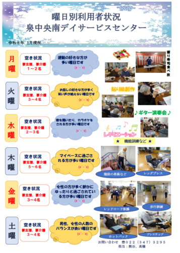 泉中央南デイサービスセンターの空き情報 令和8年1月現在