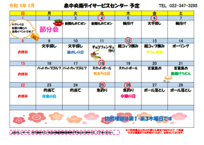 ☆令和8年2月 レクリエーションカレンダー☆