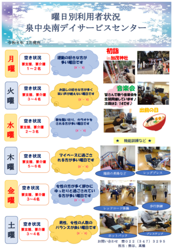 泉中央南デイサービスセンターの空き情報 令和8年1月現在