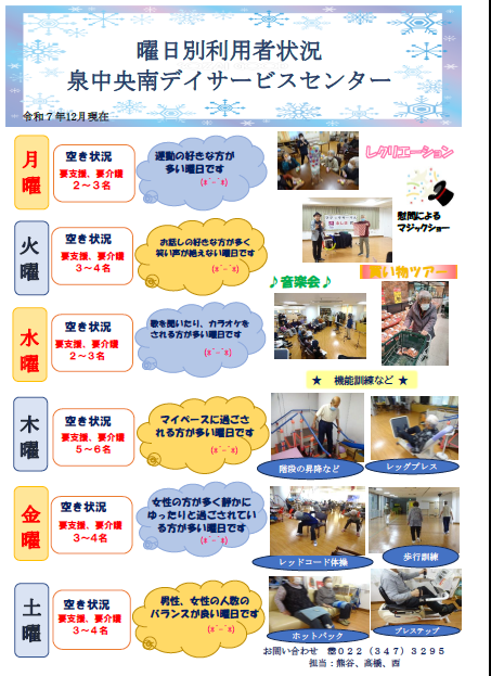 > 泉中央南デイサービスセンターの空き情報 令和7年12月現在